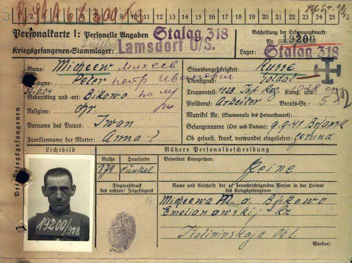 Petra Michejeva rozklepala zima. Sípavě se rozkašlal a na čele mu vyrazil studený pot. Už nemohl ani vstát. Stráže ho nechaly ležet v baráku, protože jeho tělo neposlouchalo ani jejich povely, ani kopance, ani údery pažbou. Vyhublý byl na kost. Před týdnem je v lese překvapila prudká bouře. Stráže v krupobití nechaly nastoupit zajatce na otevřené cestě a měly škodolibou radost z toho, jak jim kusy ledu bičují tváře a záda. Prudce se tenkrát ochladilo, a přestože nastydl, musel další ráno zase do hor. Dny byly dlouhé a oni kopali cestu vinoucí se hřebenem v olověných mracích. Mlha, zima, mokro a v poledne jen trocha smradlavé vody s řepou a zelím. Petrova horečka stoupala a brzy mu bylo jasné, že dostal zápal plic. „Lékaře? Na co lékaře, Ivane? Nemysli si, že se budeš ulejvat. Nejdříve počkáme, až za tebe přijde z tábora náhrada, pak tě možná pustíme s jejím doprovodem zpátky,“ vedoucí stráží mu při ranním nástupu dal jasně najevo, co je jeho prioritou. Náhrada ale nepřicházela a Petr cítil, jak slábne. Vlastně je to jedno, stejně by cestu na vlak do Lambinovic dnes už neušel. Možná bude mít kříž tam u kamarádů, kteří v zimě podlehli té strašné epidemii. Tehdy na konci roku 1941 byl v horách teprve krátce a modlil se, aby přežil. Přežil! Asi pomohlo to očkování, které před odjezdem z tábora dostali, ale k čemu to všechno vlastně bylo? Jen se ta šílená dřina a věčný hlad o pár měsíců protáhly. Kdyby tak alespoň věděl, že Maria s Rufinem a Vladimirem jsou v pořádku. Nevěděl a jeho zbídačené tělo se opět pohroužilo do spánku. Petr Michejev už neslyšel, jak se ostatní zajatci vrátili večer z lesa a Michail, který spával na pryčně vedle něho, oznámil staršinovi, že Petr je mrtvý. Petr Michejev se narodil ve vesničce Bykovo ve Tverské oblasti v roce 1904. Tehdy ještě nad širou Rusí vládl báťuška car. Jeho otec musel do velké války, která se vzápětí změnila na občanskou. Pro ně v lesích na severozápad od Moskvy se ale ani v dalších letech nic nezměnilo. Jen rodiče jeho Taťány museli veškeré pole a dobytek odevzdat do kolchozu. No, alespoň nemusel být sedlákem. Po boku otce se totiž vyučil tesařem a práci se dřevem měl rád. Také si s Taťánou za pomoci otce se strýcem postavil nový dům. Pracovat tehdy jezdil na výstavbu velké textilní továrny ve Vysokovsku, a když bylo hotovo, přešel k armádě. Dělal dál tesaře a byla to jistota vyšších příjmů než v kolchoze. Taťáně se mezitím narodili dva kluci a holčička. Malá Zoja zemřela ještě v peřince, a tak se ženou vychovávali jen Rufina a Vladimira. Vše se ale změnilo v létě 1941. Vypukla Velká vlastenecká válka. Petr musel začátkem července narukovat poté, co po drtivých německých vítězstvích Státní výbor obrany rozhodl vytvořit z rezervních jednotek 56 pěších a 10 jezdeckých divizí. Byl zařazen do 1028. pluku 260. pěší divize nově formované 50. armády a po krátkém bojovém výcviku okamžitě odjel na Brjanský úsek fronty, kde jeho jednotka měla být nasazena do boje proti postupujícím německým vojskům. Útok na Moskvu se v této době sice načas zastavil, ale jen proto, že Hitler nařídil generálu Guderianovi, aby otočil své tanky na jih a pomohl zlikvidovat Sověty urputně bráněný kyjevský výběžek. Když 260. pěší divize koncem srpna 1941 obsadila určené pozice, byl na dotyku nepřátelských vojsk relativní klid. Probíhaly jen drobné šarvátky, mající za cíl zjistit polohu a sílu nepřítele, a tak se sovětské velení rozhodlo využít dočasného oslabení německé armády v Brjanské oblasti a provést začátkem září 1941 protiútok. Ten však narazil na zformovanou německou obranu a nejenže nepřinesl očekávaný úspěch, ale znamenal i značné ztráty. Počty padlých, raněných a zajatých šly do tisíců. Dne 9. září se do německého zajetí dostal i sedmatřicetiletý Petr Ivanovič Michejev. Čekala ho krušná cesta daleko na západ. Nejprve pěšky a posléze vlakem v přeplněných dobytčích vagonech s minimem jídla a vody. Cíl: Stalag VIII B Lambinovice. Ale sovětské zajatce nebylo kde ubytovat, a tak ti práceschopní byli ihned zařazováni do pracovních komand. Po necelých dvou a půl měsících od okamžiku, kdy padl do zajetí, se Petr Michejev ocitl na opuštěném místě uprostřed hlubokých lesů vysoko v horách. Pracovní komando R 12 bylo nasazeno osm kilometrů od Rejvízu, aby zde nahradilo vyčerpané polské zajatce. Ředitelství arcibiskupských lesů nebylo spokojeno s jejich pracovními výkony a otroci z východu měli lépe naplnit jejich představy. U sovětských zajatců také nebylo třeba hledět na nějaké normy, ať už v počtu ubytovaných nebo v množství poskytovaných potravin. Ubytovací kapacita „lesního tábora“ tak byla dvojnásobně překročena, což spolu s nedostatečnou stravou a pracovním vyčerpáním zajatců vedlo nedlouho po nasazení komanda k propuknutí epidemie tyfu, jíž od 4. prosince 1941 do 5. ledna 1942 podlehlo 18 zajatců. Kromě vyhlášení dočasné karantény se nic podstatného nezměnilo a sovětští zajatci dál v lese padali vyčerpáním. Mezi „lesním táborem“ na Rejvízu a kmenovým táborem v Lambinovicích panoval po skončení karantény čilý pohyb pracovních sil, neboť oslabené, nemocné a práce neschopné zajatce bylo nutné posílat zpět a komando doplňovat novými kontingenty. Hrůzy, které se zde tehdy odehrávaly, vyplavaly na povrch teprve po válce. Maria Michejevová, podobně jako tisíce sovětských žen, mezitím od vojenské správy dostala dopis, že její manžel je nezvěstný a až do své smrti v roce 1976 neměla tušení, jaký byl jeho osud a kde má hrob. Nedozvěděli se to ani jejich sy